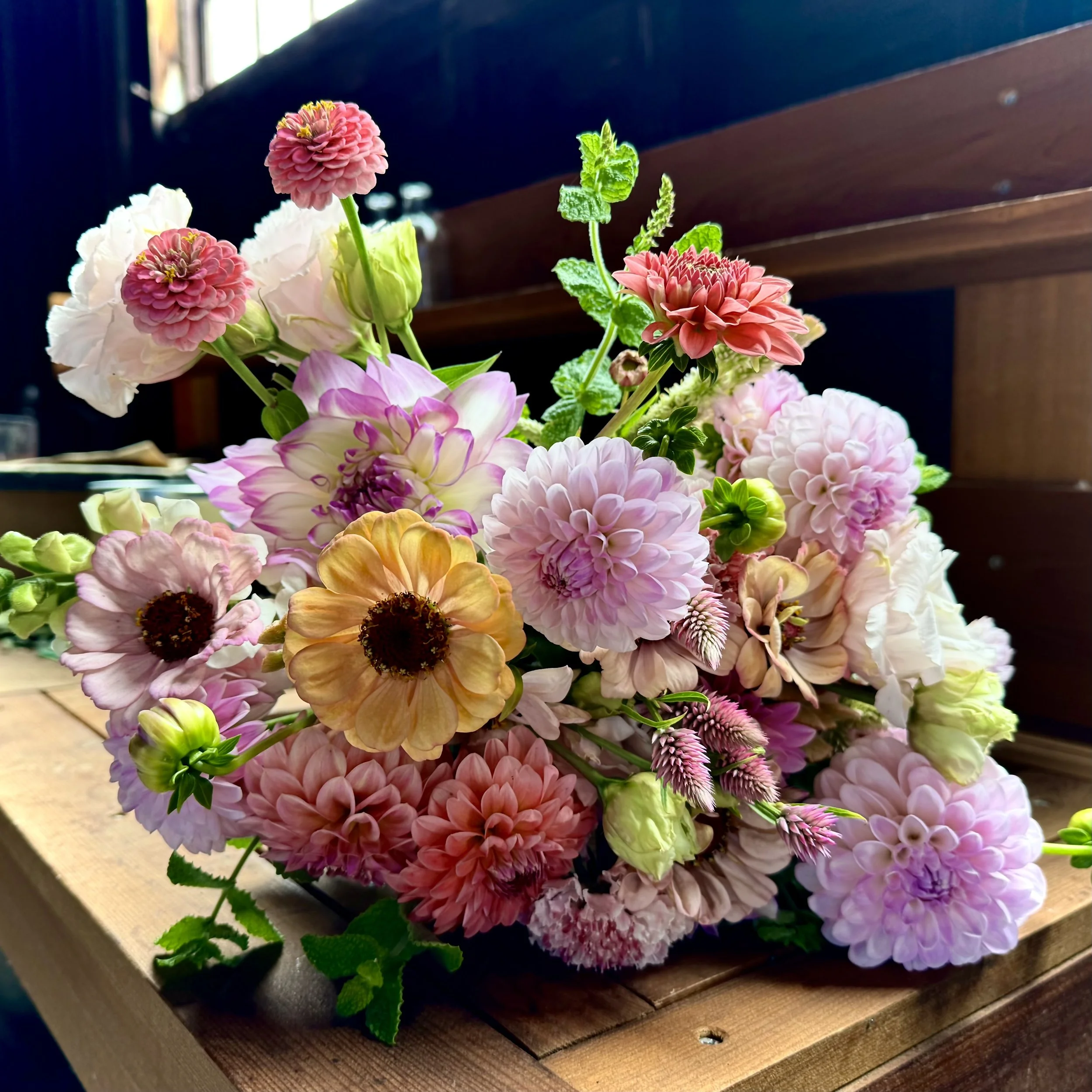 Enjoy 6 large bouquets of our specialty garden flowers throughout the 2026 growing season. This highly customizable program allows you to specify your color palate and pick-up dates. The program starts in the spring with an oversized bouquet of heirloom narcissus. Bouquets during the season will include tulips, peonies, dahlias, snapdragons, lisianthus, and other favorites. The color combinations are dreamy!